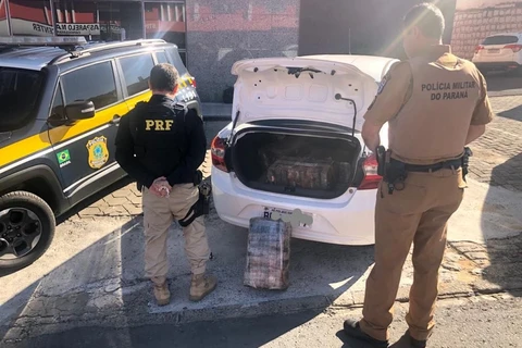 PRF apreende 200 quilos de maconha em carro com placas clonadas, em Irati