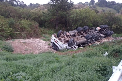 Caminhoneiro morre em tombamento em rotatória de acesso à Piraí do Sul