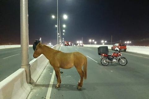 Motociclista atinge cavalo solto na pista e fica ferido na RMC