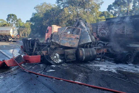 Uma pessoa morre em acidente com cinco caminhões na BR-476, em São Mateus do Sul