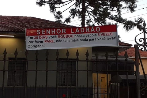 Após cinco roubos, direção de escola faz faixa com apelo a “senhor ladrão’