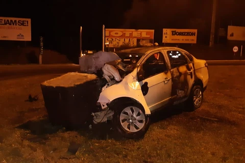 Três homens morrem após carro bater em pedra e pegar fogo, em Irati