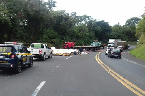 Motorista fica ferido após perder controle da direção e bater caminhão em barranco na BR-277