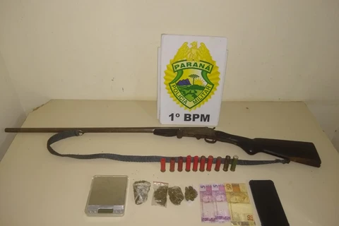 PM apreende espingarda e drogas em residência