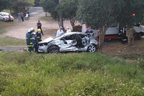 Trem arremessa carro em cruzamento e motorista tem ferimentos graves em Curitiba