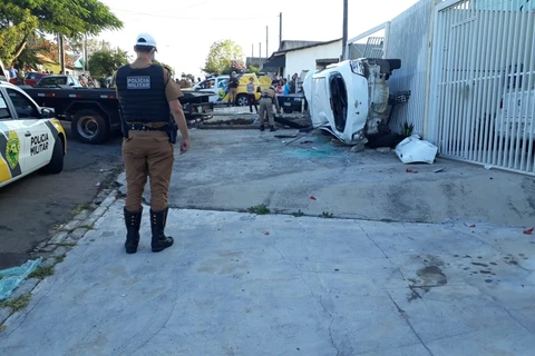 Após bater duas vezes em outros veículos e atropelar pedestre, motorista bêbado foge e capota o carro