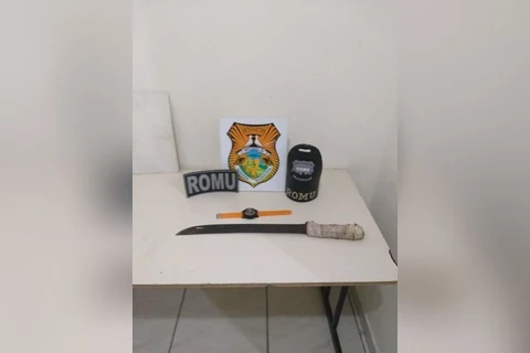 Foragido da justiça é preso após andar com facão na cintura