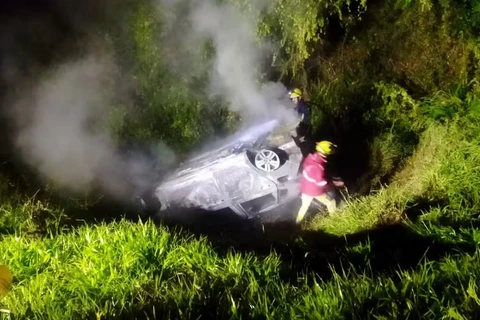 Motorista morre carbonizado após capotar carro em rodovia e cair de altura de cinco metros no Paraná