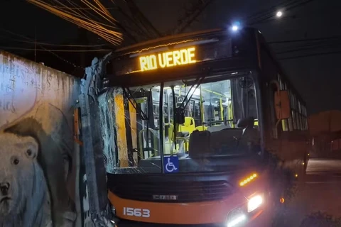 Ônibus do transporte coletivo de Ponta Grossa sofre tentativa de assalto, motorista perde controle e acaba batendo em poste