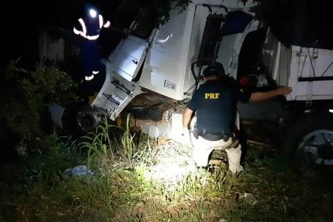 Motorista fica ferido após caminhão bater em árvore na BR-373