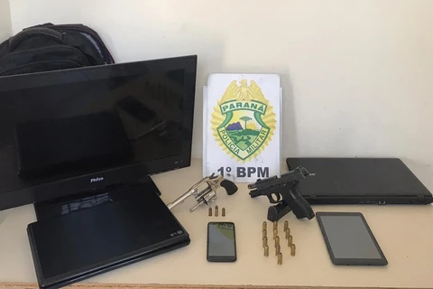 Após confronto, PM apreende armas, munições e recupera objetos roubados; Suspeito foi baleado e morreu no hospital