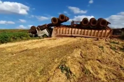 Motorista fica gravemente ferido após capotar caminhão, na zona rural de Londrina