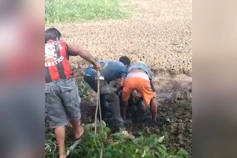 Idoso atolado até a boca em lamaçal é resgatado por moradores, em Pinhais