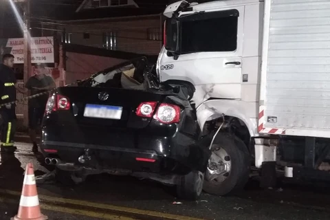 Motorista morre após bater carro contra caminhão, na Rodovia da Uva