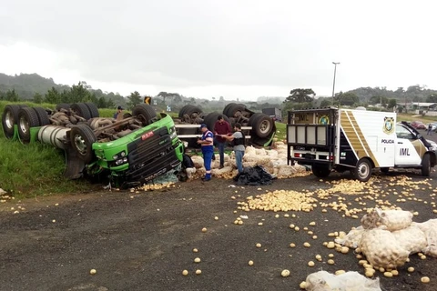 Motorista morre após caminhão carregado com batatas sair da pista na BR-277, em Guarapuava