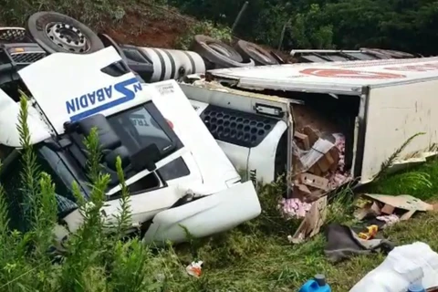 Dois caminhões tombam na PR-151, em Piraí do Sul