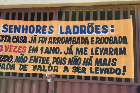 Após quatro assaltos, moradora do DF faz faixa com recado para ladrões: 'Não entre'