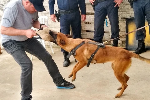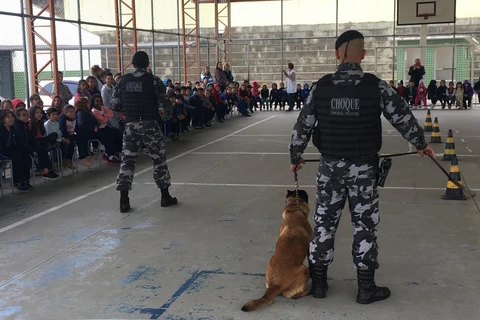 Crianças da Escola Municipal Professora Loise Foltran De Lara recebem visita do canil da PM