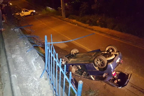 Carro cai de mais de 4 metros de altura e ocupantes sofrem apenas ferimentos leves
