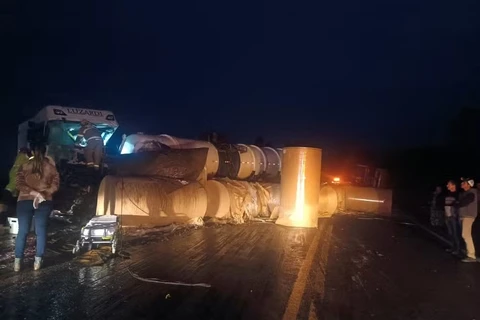 Criança de três anos morre após carreta carregada com bobinas de papel tombar e ser atingida por caminhão na PR-151
