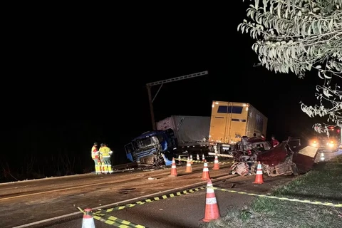 Quatro pessoas morrem em acidente entre dois caminhões e um carro na BR-277, em Candói