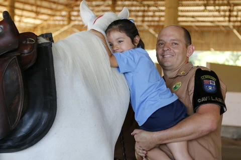 Alunos do Colégio Marista visitam Pelotão Montado da PM