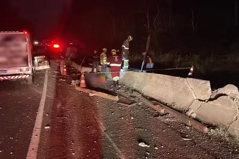 Pedestre morre após vigas de concreto caírem em cima dele enquanto consumia bebida alcoólica no acostamento, no Paraná
