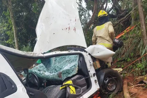 Carro cai em ribanceira de 10 metros e jovem fica enroscado em arame na PR-082, em Rondon