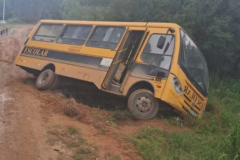 Ônibus escolar com 14 crianças tomba em estrada rural de Antônio Olinto