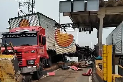 Caminhão bate em praça de pedágio desativada na BR-369 em Arapongas