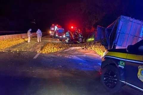 Caminhão com laranjas tomba e motorista fica ferido em estado grave, no Paraná