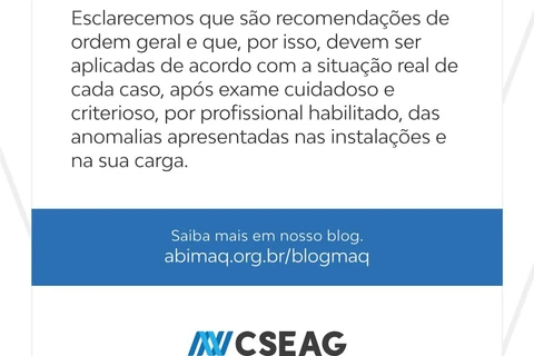 Esclarecemos que são recomendações de ordem geral e que, por isso, devem ser aplicadas de acordo com a situação real de cada caso, após exame cuidadoso e criterioso das anomalias apresentadas nas instalações e na sua carga.