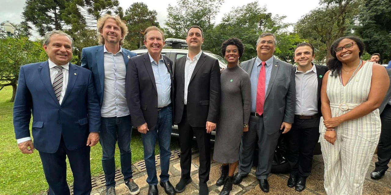 O deputado federal Aliel Machado (PV) participou nesta sexta-feira, 14, da entrega de 50 novos veículos para o enfrentamento à violência contra a mulher e para a área de segurança pública do Paraná. O evento foi realizado no Palácio Iguaçu, em Curitiba, e contou com a presença do ministro da Justiça, Flávio Dino e do Governador Ratinho Junior, além de deputados federais e autoridades de segurança. A entrega dos veículos e outros equipamentos fazem parte do Programa Nacional de Segurança e Cidadania (Pronasci), do Governo Federal.