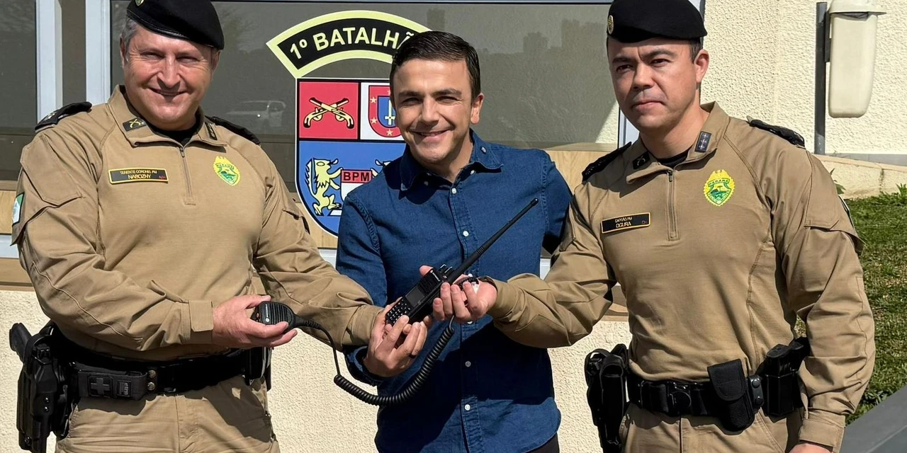 COM ASSESSORIAS - O deputado federal Aliel Machado (PV-PR) realizou, nesta sexta-feira (12), a entrega de 57 novos rádios transmissores portáteis para a Polícia Militar. Os equipamentos vão reforçar a segurança pública em duas importantes unidades: 34 rádios destinados ao 1º Batalhão da PM, em Ponta Grossa, e 23 ao 26º Batalhão, em Telêmaco Borba.