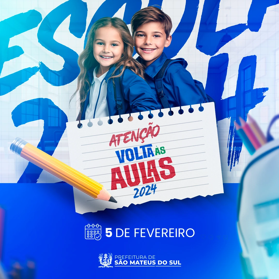 COM ASSESSORIAS - A Prefeitura Municipal de São Mateus do Sul informa que o ano letivo na rede municipal terá início na segunda-feira, 05 de fevereiro. De acordo com a Secretaria Municipal de Educação, os Centros Municipais de Educação Infantil (Cmeis) receberão alunos desde o Berçário até o Infantil V, enquanto as escolas atenderão desde a Educação Infantil (Infantil IV e V) até o Ensino Fundamental (1º ao 5º ano), adaptando-se à realidade de cada instituição. Para outras informações sobre o início das aulas basta entrar em contato com a Secretaria de Educação em (42) 3912-7050.