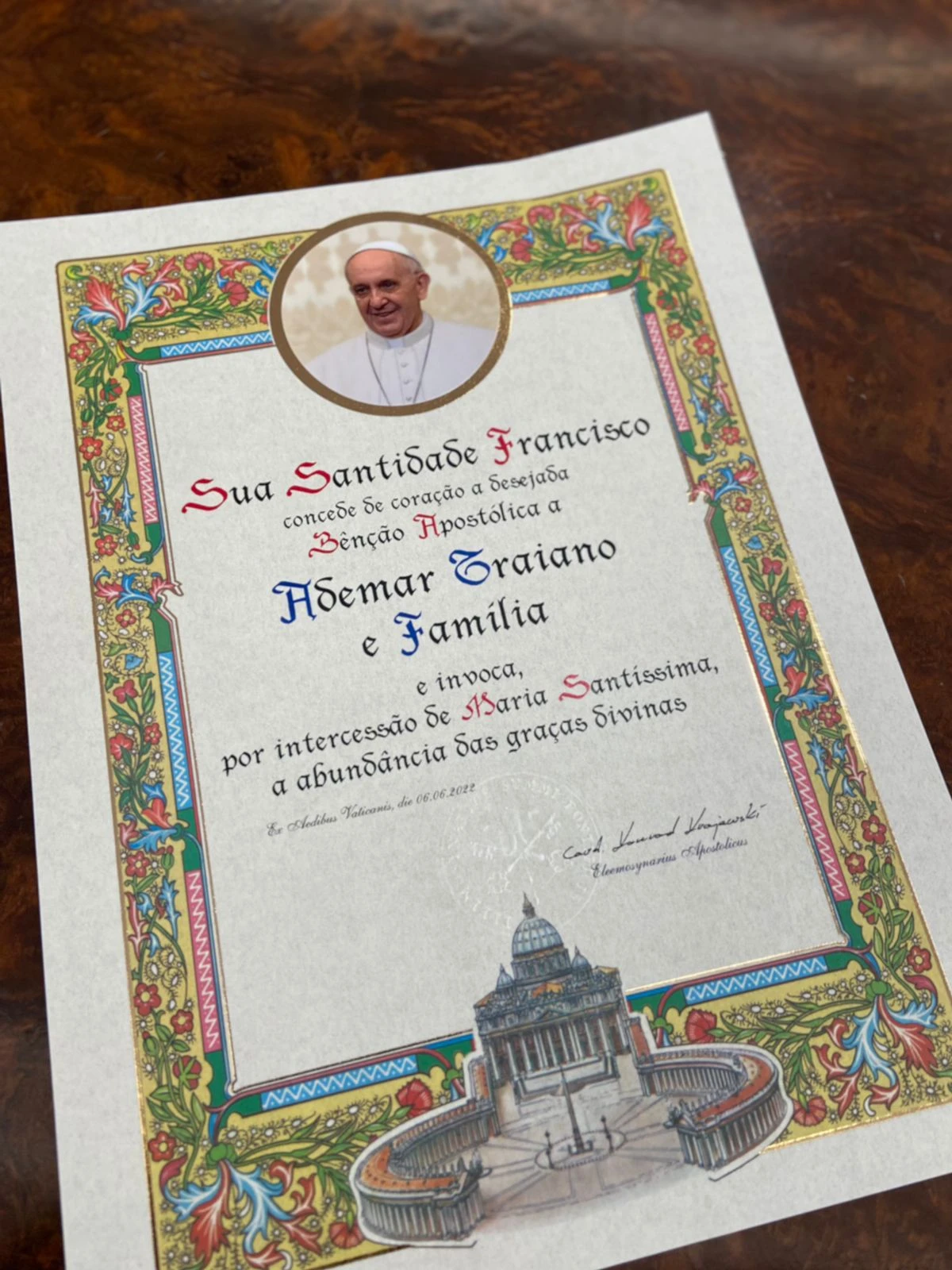 Traiano, emocionado com a bênção e o reconhecimento do trabalho realizado em prol da saúde da população do Paraná, disse que a Bênção Papal é um "alimento para a nossa alma".