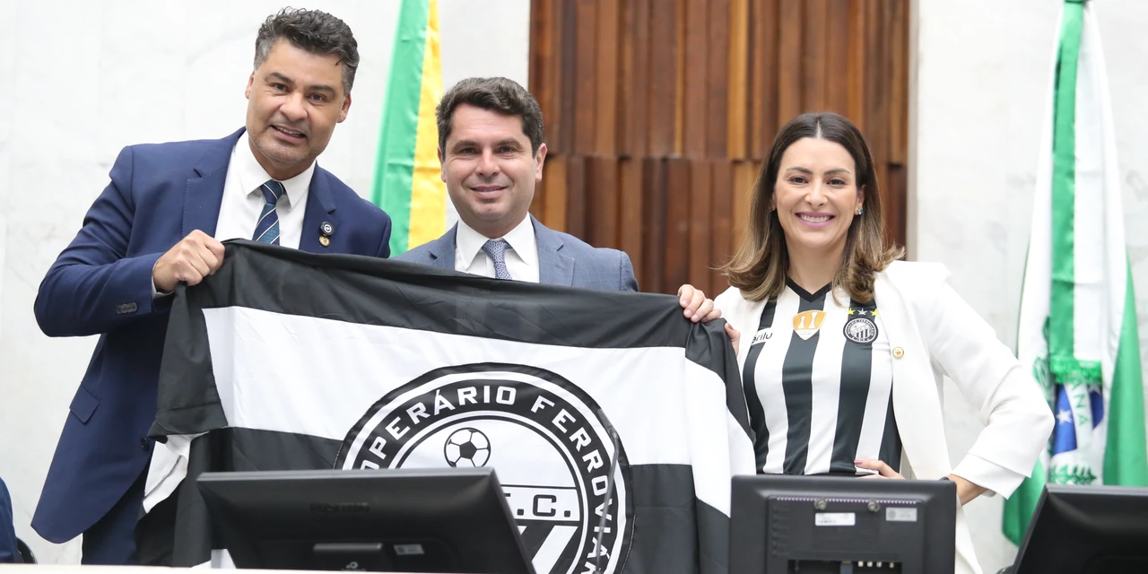 COM ASSESSORIAS - A deputada estadual Mabel Canto (PSDB), o deputado Marcelo Rangel (PSD) e o presidente da Assembleia Legislativa do Paraná, deputado Alexandre Curi (PSD), protocolaram nesta segunda-feira (31) uma menção honrosa ao Operário Ferroviário Esporte Clube. A homenagem reconhece a histórica conquista do título de campeão paranaense de 2025 pelo time ponta-grossense.