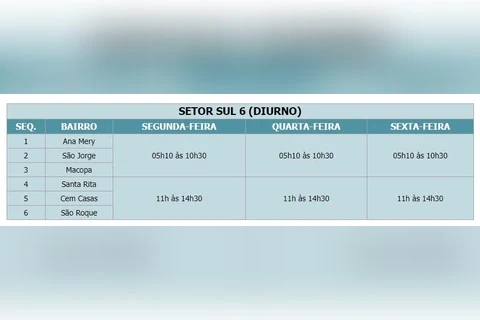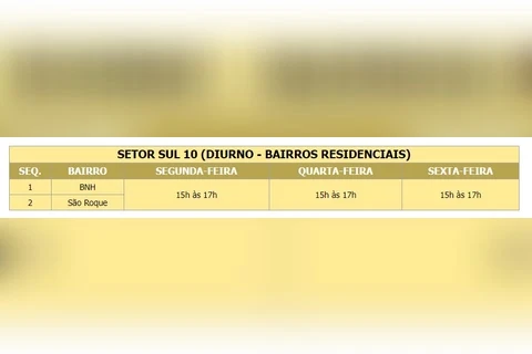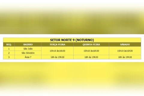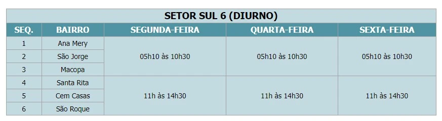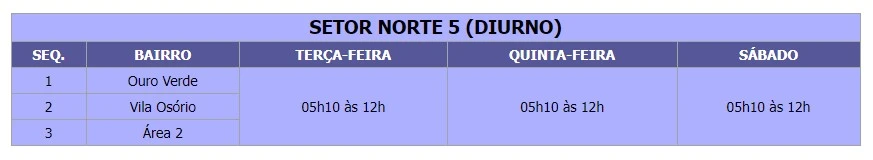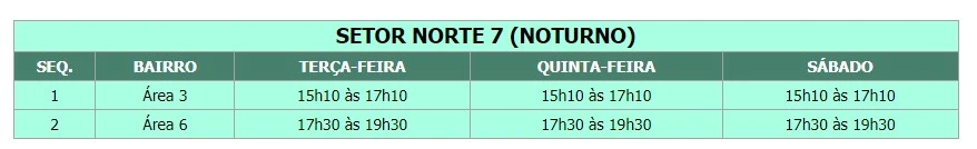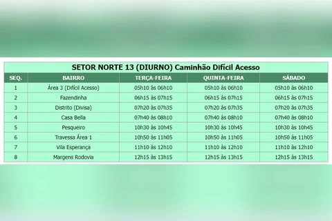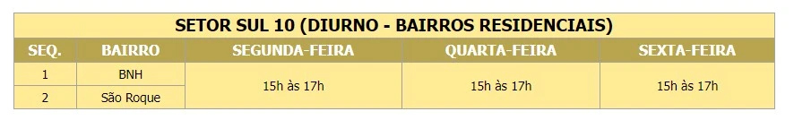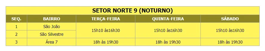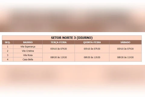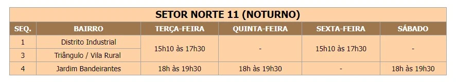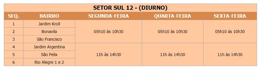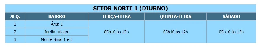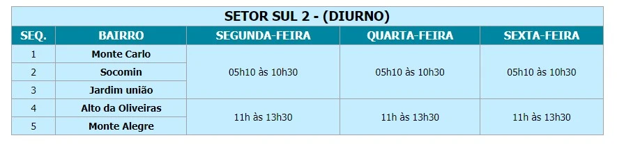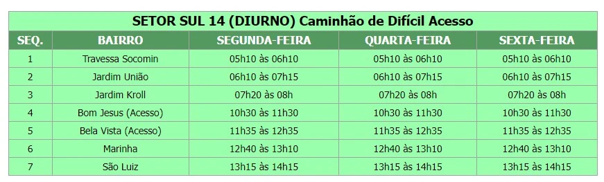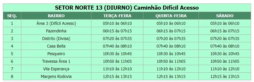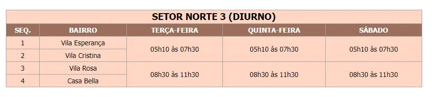 SEGUE ABAIXO OS HORÁRIOS DE COLETA
