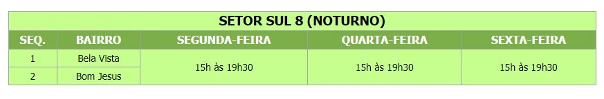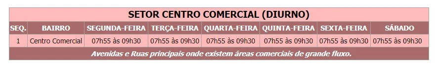 O centro comercial de Telêmaco Borba continuará com a coleta todos os dias. Já o Distrito Industrial, Triângulo e Vila Rural, serão coletados nessa programação. O setor de coleta informa que possivelmente alguns horários serão alterados, porém, no decorrer da semana todos perceberão uma maior regularidade.