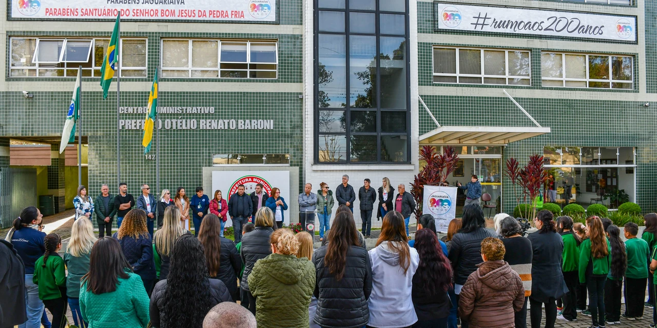 COM ASSESSORIAS - A Administração Municipal, através da Secretaria de Governo (SEGOV), em parceria com da Secretaria de Educação, Cultura, Esporte e Lazer (SMECEL), encerrou nesta terça, 15, os atos cívicos alusivos ao Bicentenário de Jaguariaíva, em frente ao Centro Administrativo Prefeito Otélio Renato Baroni.