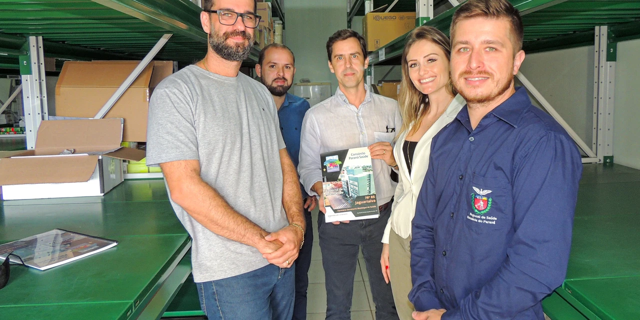 COM ASSESSORIAS - Representantes do Consórcio Paraná Saúde e da 3ª Regional de Saúde, entre eles o diretor executivo do consórcio, Carlos Roberto Kalckmann Setti, e a chefe da SCAFAR da 3ª Regional de Saúde, Danielle Klimionte Pacheco, estiveram em Jaguariaíva nesta quinta (28).