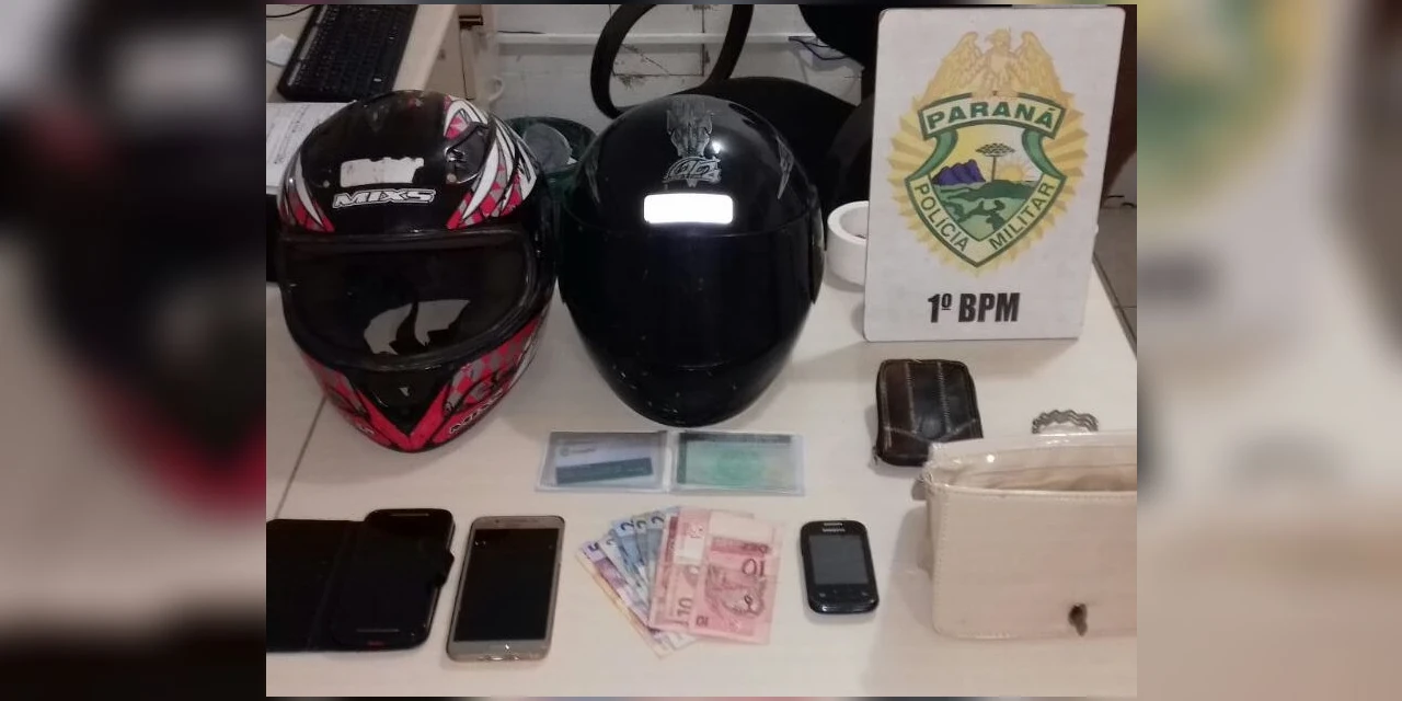 Na bolsa dispensada estava um celular roubado e diversos pertences das três vítimas. A motocicleta usada pela dupla de assaltantes foi apreendida, e os rapazes, de 21 e 25 anos de idade, presos e guardados na Delegacia da Polícia Civil.