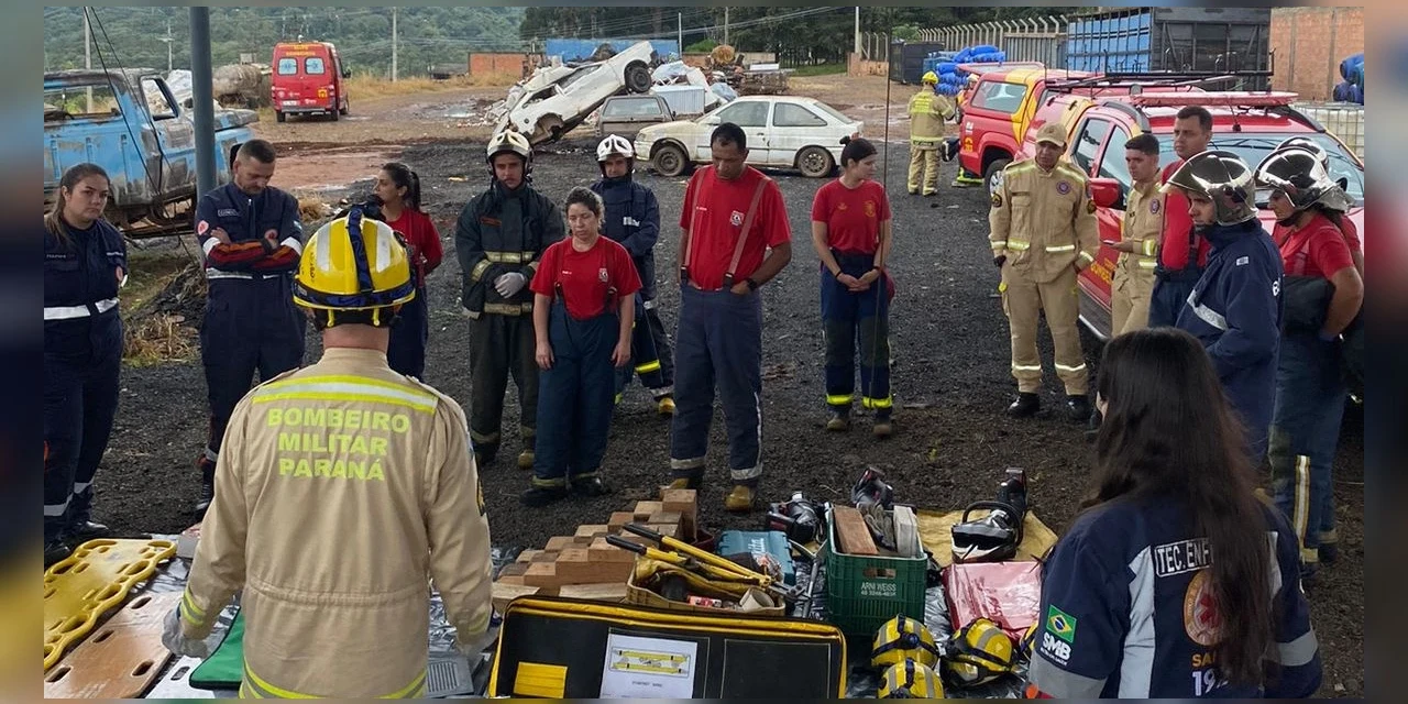 COM ASSESSORIAS - Equipes do Posto de Brigada Comunitária de Arapoti e Equipes do SAMU de Arapoti e Jaguariaíva e do Corpo de Bombeiros de Jaguariaíva participaram de Capacitação (Nivelamento) em Resgate Veicular visando o aprimorando de técnicas de estabilização e retirada de vítimas de acidentes automobilísticos.