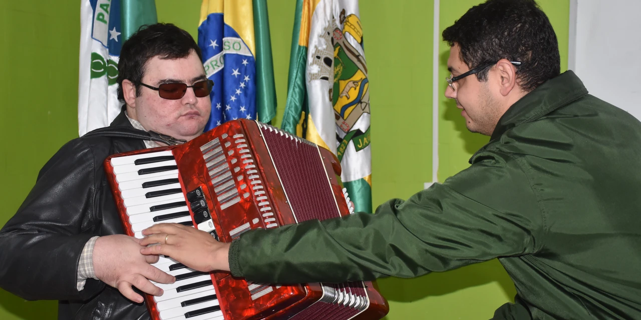 O primeiro aluno com deficiência visual acolhido é o jaguariaivense Luiz Carlos da Veiga. Ele conta que a oportunidade significa a realização de um sonho. “Desde pequeno eu sonhava em tocar acordeon, que para mim tem um som muito bonito”, conta. Para ele, as partituras têm de ser transcritas em braile, método de leitura utilizado por deficientes visuais.