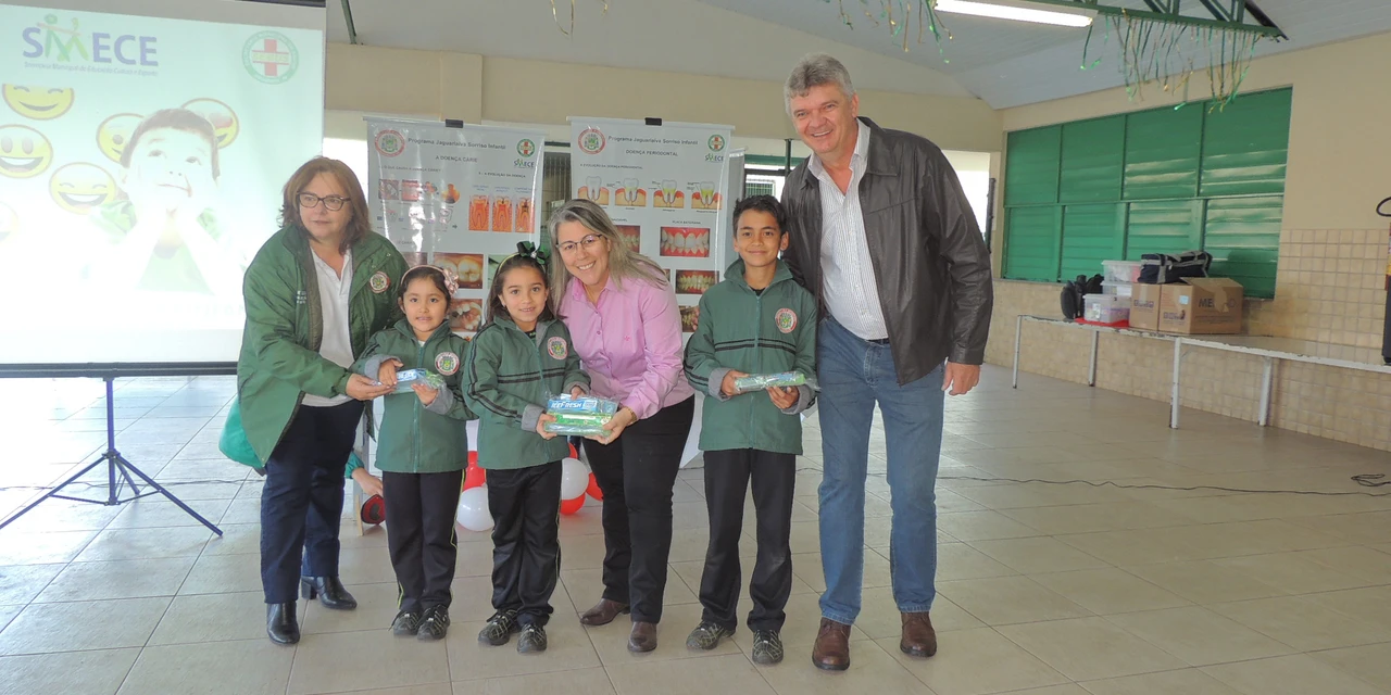 IMPRENSA/Jaguariaíva - Em Jaguariaíva as crianças das escolas municipais são ensinadas sobre problemas que acometem os dentes e a boca. Elas também recebem kits de saúde bucal, com escova, fio e cremes dentais, mais estojo para guardar os itens e revista educativa. A ação é parte do Programa Jaguariaíva Sorriso Infantil, da Prefeitura Municipal, que difunde a saúde bucal por meio da prevenção em todas as escolas e cemeis.