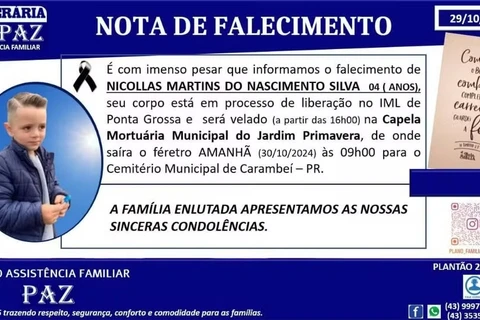 O corpo de Nicollas foi encaminhado ao Instituto Médico Legal (IML) de Ponta Grossa.