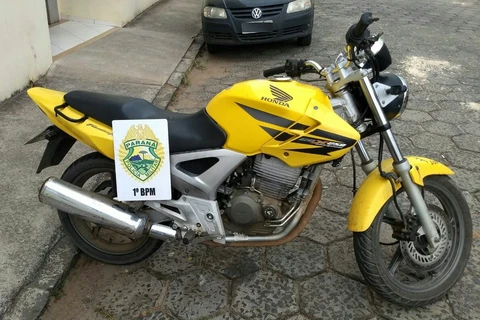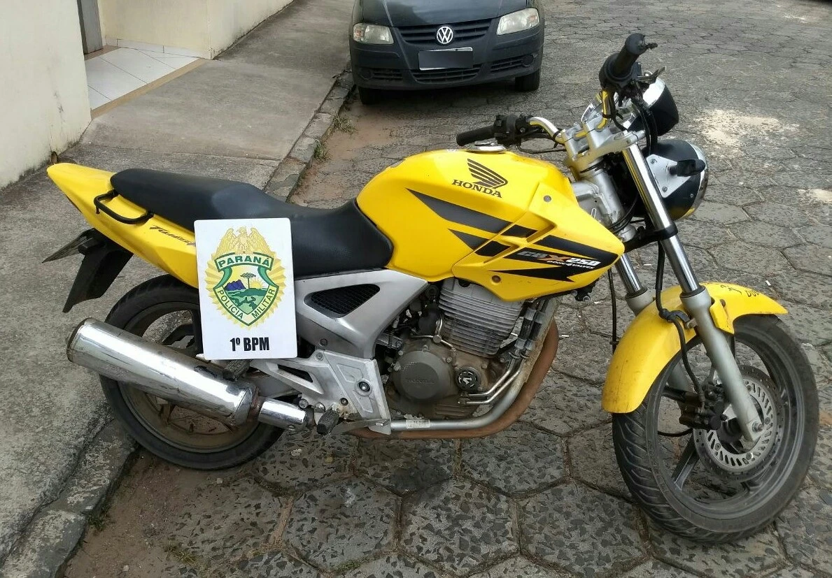 A motocicleta utilizada pelos infratores, uma HONDA/CBX 250, possuía registro de roubo, crime ocorrido em 22/06/17, no município de Ibaití/PR. O veículo foi recolhido e encaminhado à delegacia, junto ao detido e à arma de fogo apreendida. O segundo suspeito envolvido no confronto segue foragido. (Comunicação Social do 1º BPM)
