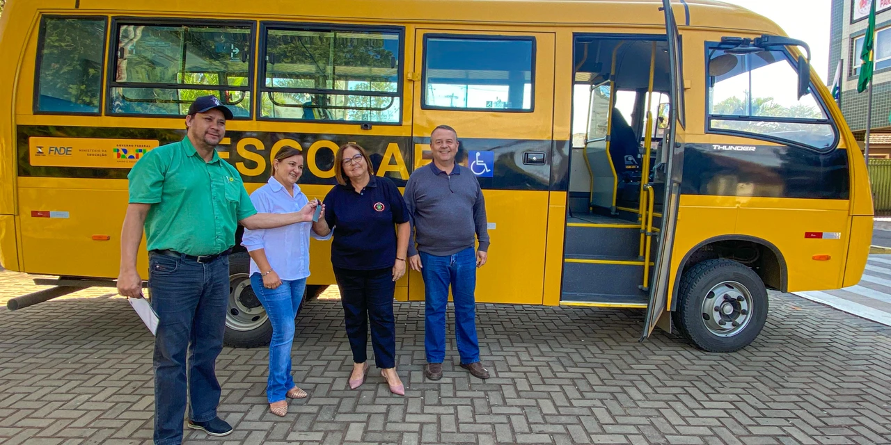 COM ASSESSORIAS - A Administração Municipal recebeu, na manhã de hoje, 18, um ônibus Rural Escolar, com capacidade para 29 estudantes sentados, e que pode ser equipado com plataforma elevatória veicular, garantindo acessibilidade. As chaves foram entregues para a Prefeita Alcione Lemos, que recebeu o veículo e repassou chaves e documentos para a Secretária de Educação, Cultura, Esporte e Lazer, Erla Melo.