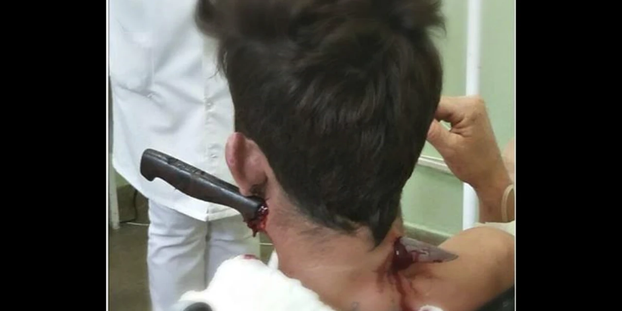 A faca foi retirada com sucesso pela equipe do hospital, onde o rapaz permanece internado em observação, sem risco de morte.