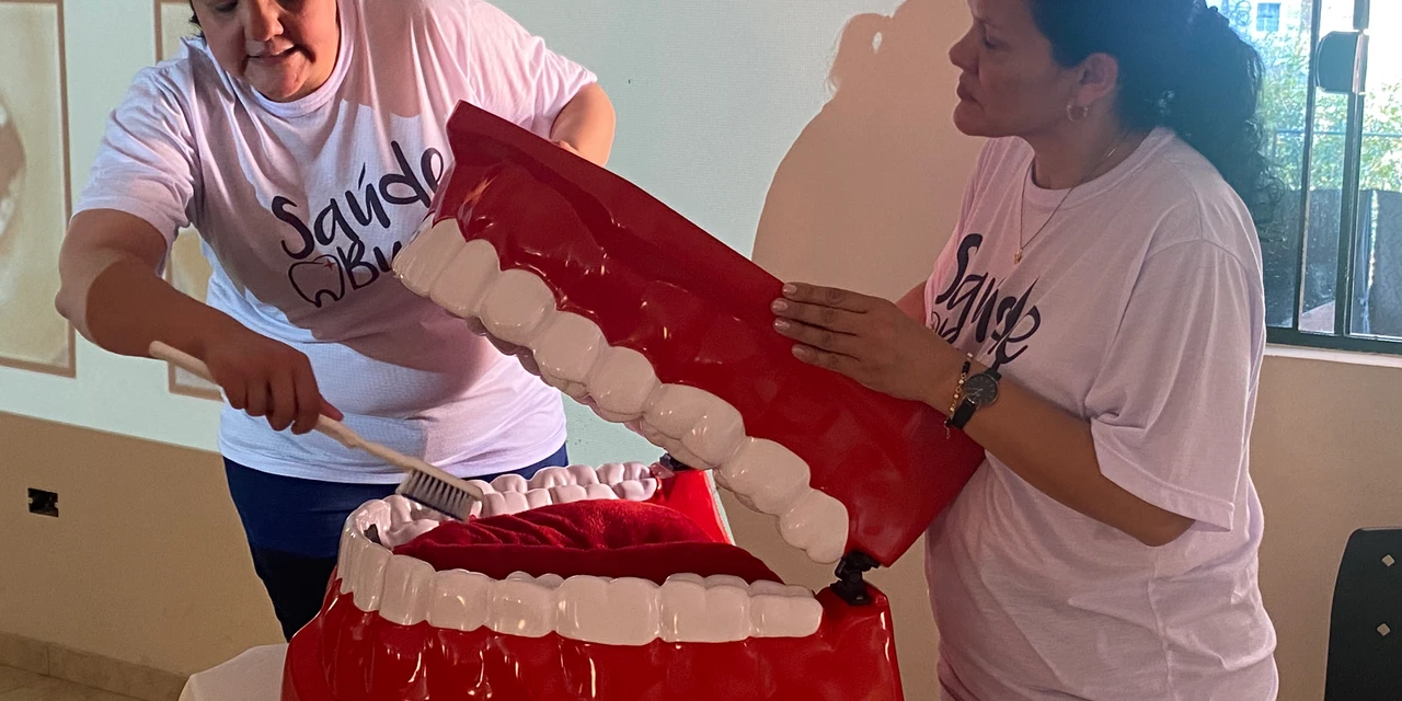 Neste dia 25 também foi a vez dos usuários do CAPS Vovó Tonica serem incentivados a cuidar da saúde bucal. As dentistas explicaram de forma bem didática a importância de cuidar dos dentes e boca.